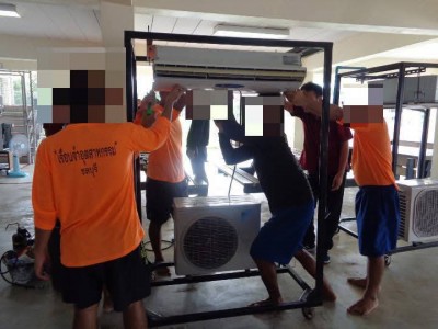 1 ปี ที่ผ่านมานำนักศึกษาออกปฏิบัติงานล้าง บำรุงรักษาเครื่องปรับอากาศ ศาลาประชาคมอำเภอบ้านบึง จังหวัดชลบุรี กย67