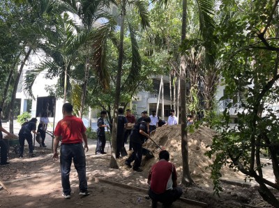 คณะผู้บริหาร คณะครู นักเรียน แผนกโลจีสติก ช่างเชื่อมโลหะ สถาปัตยกรรม ก่อสร้าง พัฒนาพื้นที่ภายในวิทยาลัยโดยการจัดทำลานที่นั่งอเนกประสงค์