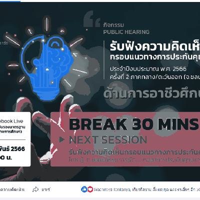 การประชุมเพื่อเข้าร่วมแสดงความคิดเห็นต่อ (ร่าง) กรอบแนวทางการประกันคุณภาพภายนอกสถานศึกษา ด้านการอาชีวศึกษา ประจำปีงบประมาณ พ.ศ. 2566 ผ่านทาง Facebook Live ในวันศุกร์ที่ 10 กุมภาพันธ์ 2566