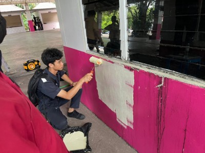 คณะผู้บริหาร คณะครู นักเรียน แผนกโลจีสติก ช่างเชื่อมโลหะ สถาปัตยกรรม ก่อสร้าง พัฒนาพื้นที่ภายในวิทยาลัยโดยการจัดทำลานที่นั่งอเนกประสงค์