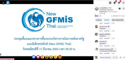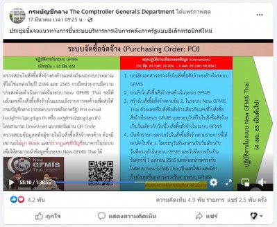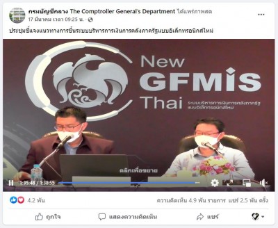 4 ปี ที่ผ่านมาการประชุมชี้แจงแนวทางการขึ้นระบบบริหารการเงินการคลังภาครัฐแบบอิเล็กทรอนิกส์ (New GFMIS Thai) วันที่ 17 มีนาคม 2565 เวลา 09.30 น.
