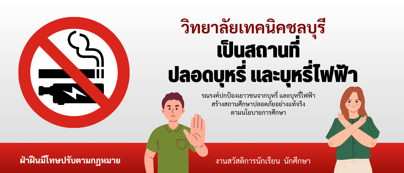 ประกาศวิทยาลัยเทคนิคชลบุรี เรื่อง มาตรการสถานศึกษาปลอดบุหรี่และบุหรี่ไฟฟ้า