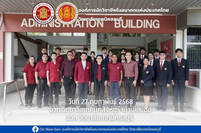 8 เดือน ที่ผ่านมาเมื่อวันที่ 27 กุมภาพันธ์ 2568 นายอำนวย เหิมขุนทด รองผู้อำนวยการฝ่ายบริหารทรัพยากร รักษาการในตำแหน่งผู้อำนวยการวิทยาลัยเทคนิคชลบุรี มอบหมายให้นาย อภิชาติ อนุกูลเวช รองผู้อำนวยการฝ่ายวิชาการ พร้อมด้วยคณะครู ให้การตอนรับ นายบัญชา ใจซื่อ รองผู้อำนวยการฝ่ายพัฒนากิจการนักเรียน นักศึกษา พร้อมคณะศึกษาดูงาน วิทยาลัยเทคนิคสิงห์บุรี เข้าเยี่ยมชมวิทยาลัยเทคนิคชลบุรี ณ ลานไทร วิทยาลัยเทคนิคชลบุรี