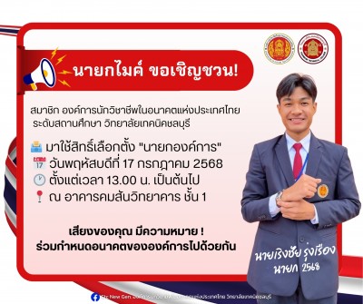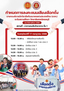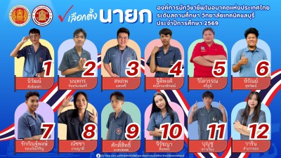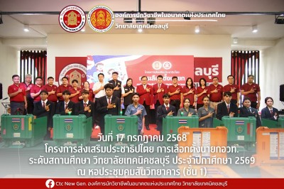 เมื่อวันที่ 17 กรกฎาคม 2568 ดร.พีรพงษ์ พันธ์โสดา ผู้อำนวยการวิทยาลัยเทคนิคชลบุรี พร้อมด้วยผู้บริหาร คณะครู นักเรียน นักศึกษา เป็นประธานในพิธีเปิด การลงคะแนนเสียง เลือกตั้งนายกองค์การนักวิชาชีพในอนาคตแห่งประเทศไทย (อวท.) ระดับสถานศึกษา ประจำปีการศึกษา 2569 ณ หอประชุมคมสันวิทยาคาร (ชั้น 1) วิทยาลัยเทคนิคชลบุรี