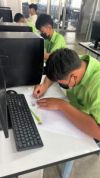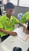 เด็กนักเรียนโรงเรียนบ้านหนองเขิน (อินทรวิชัยบำรุง หลักสูตรวิชาชีพเสริมแกนมัธยม วิชาเขียนแบบเทคนิคเบื้องต้น สเก็ตงานภาพไอโซเมตริก จากโมเดล งานที่ทำจากกระดาษ